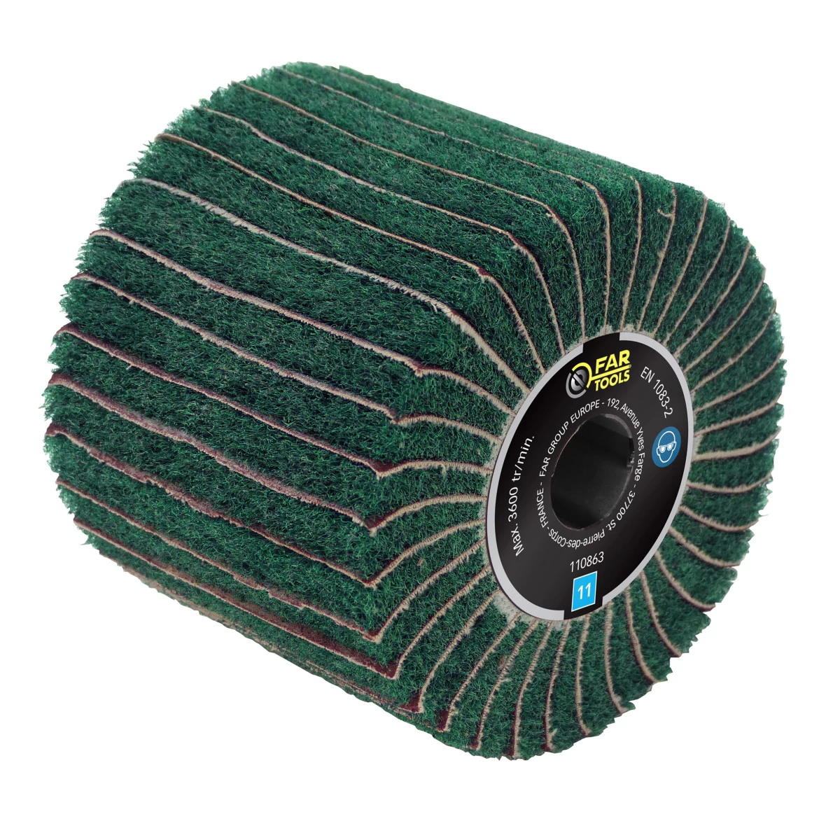 Cette brosse en fibre synthétique et à lamelles abrasives est préconisée pour poncer et satiner.