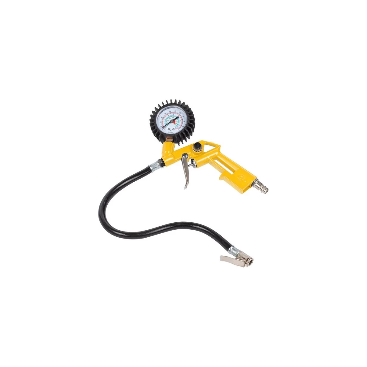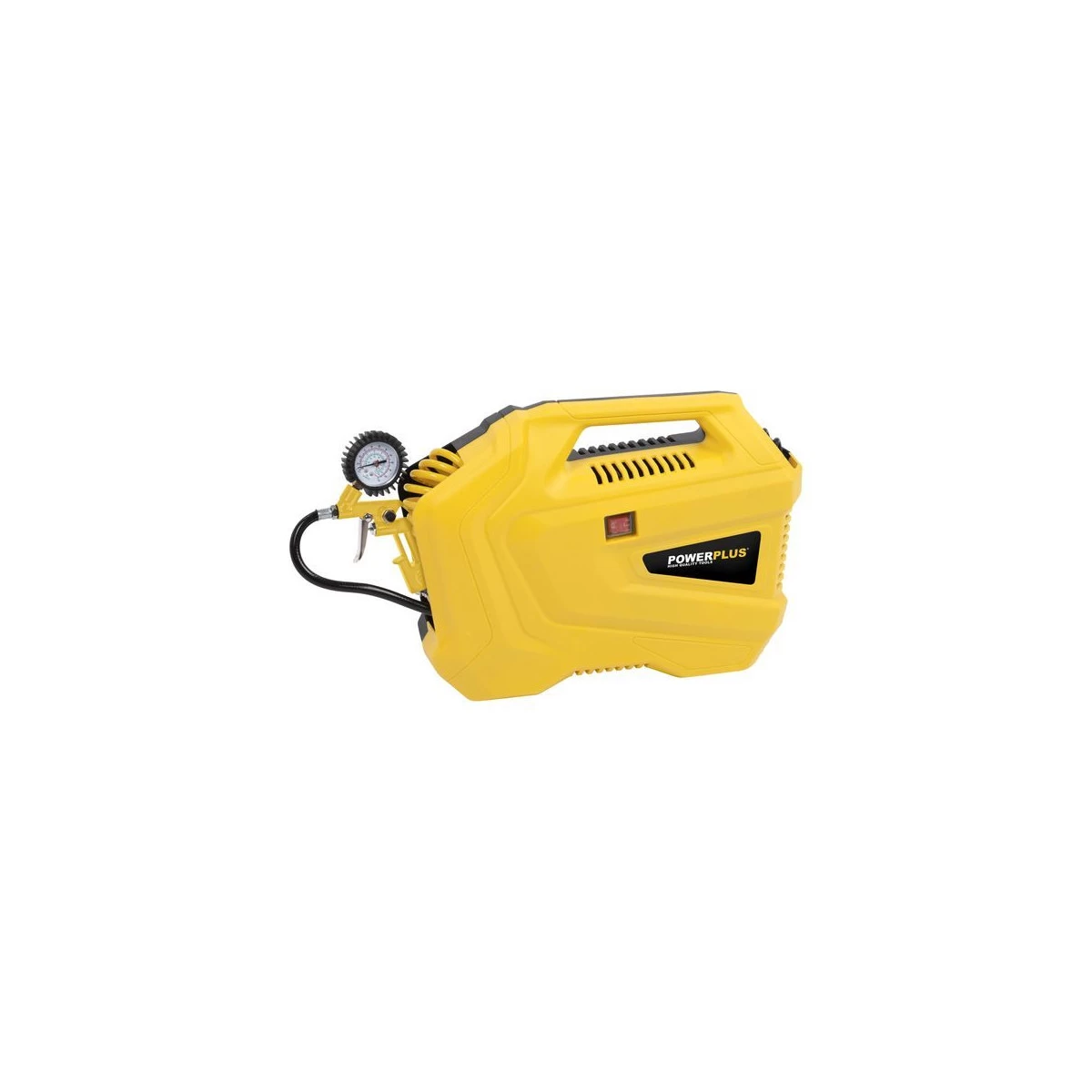 Livré avec un kit d’accessoires parfaitement intégré dans le compartiment de rangement : un pistolet gonfleur avec manomètre, une aiguille à boule, huit adaptateurs différents et un tuyau en PVC de 3 m avec connecteur rapide femelle.