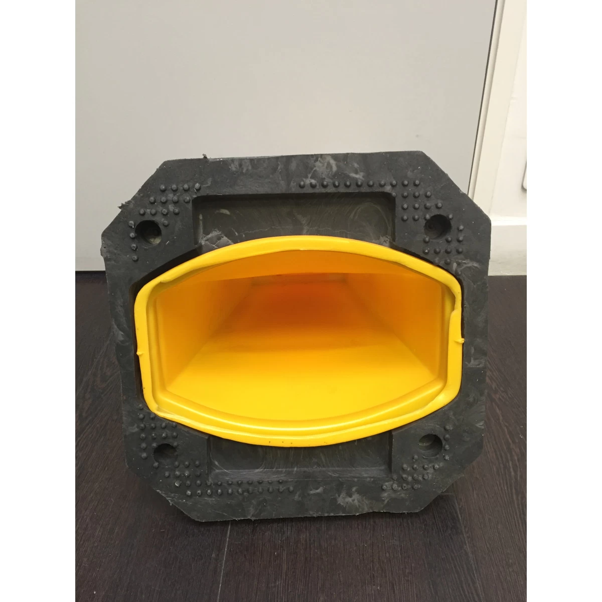 Ce cône vierge est composé d’une base en caoutchouc recyclé et d’un cône en polyéthylène.