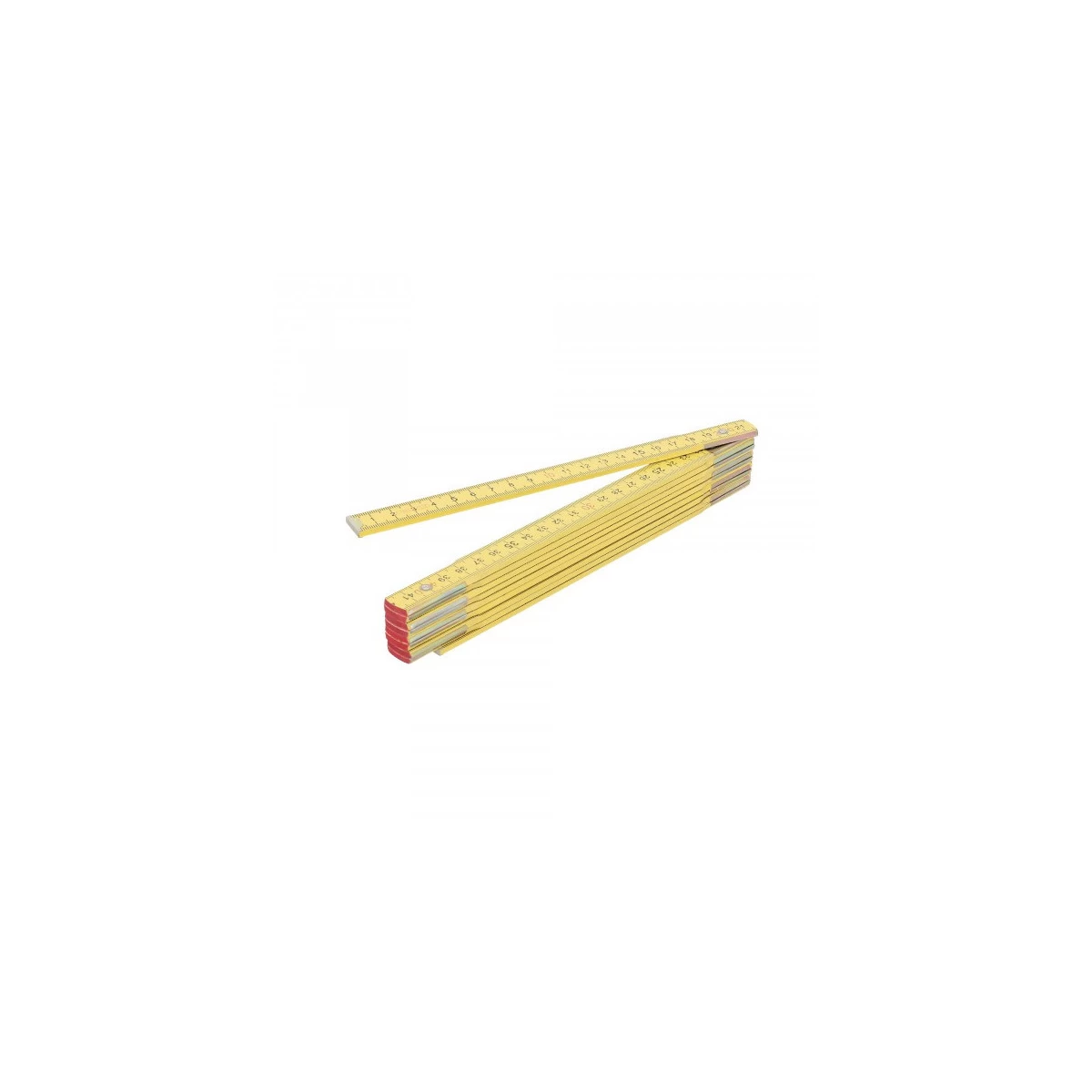 Double mètre en bois jaune de classe III avec graduation haut et bas.
