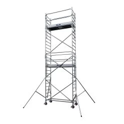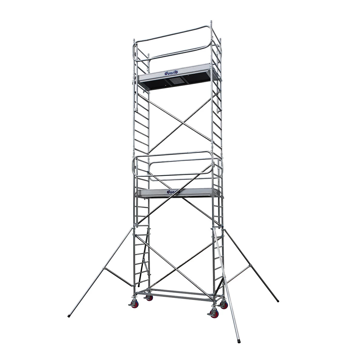 Plancher alu/bois Alto à double trappe : le risque de chute est maitrisé (en parfaite sécurité à l’intérieur des trappes, les opérateurs montent le plancher et les garde-corps latéraux)