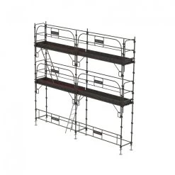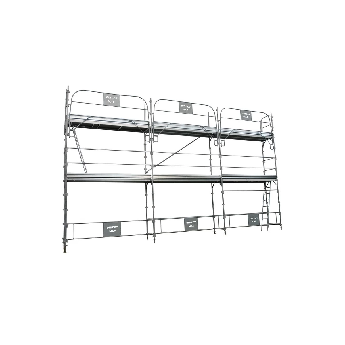 Cet échafaudage en acier galvanisé est livré avec ses planchers et plinthes. Conforme aux normes en vigueur, il est robuste et facile à monter.