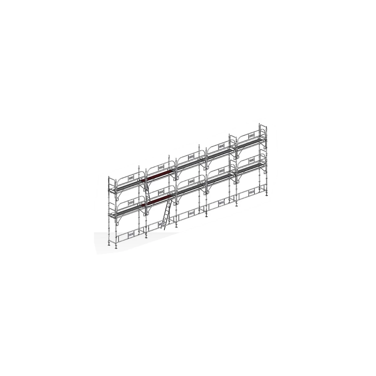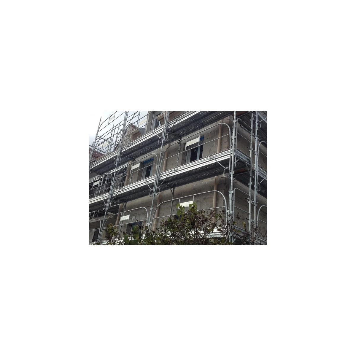 Cet échafaudage de façade en acier galvanisé est livré avec les planchers et les plinthes. Il est conforme aux normes en vigueur.