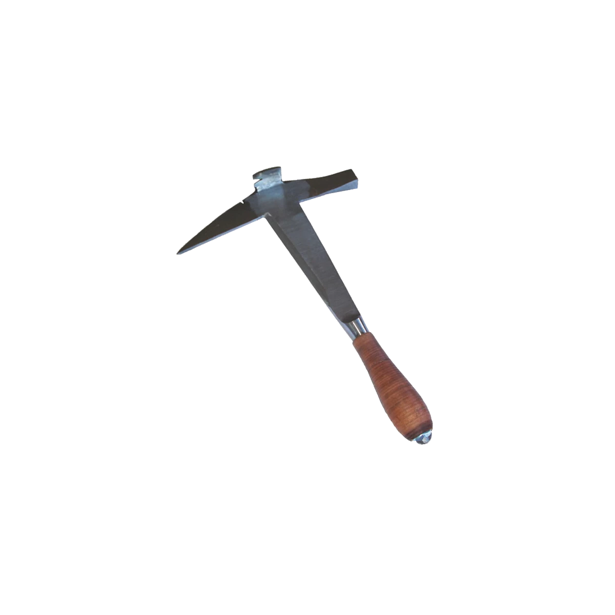 Ce marteau de couvreur pour droitier forgé à la main, poli, partiellement durci avec une pointe protégée est un modèle français avec tire-clous latéral.
