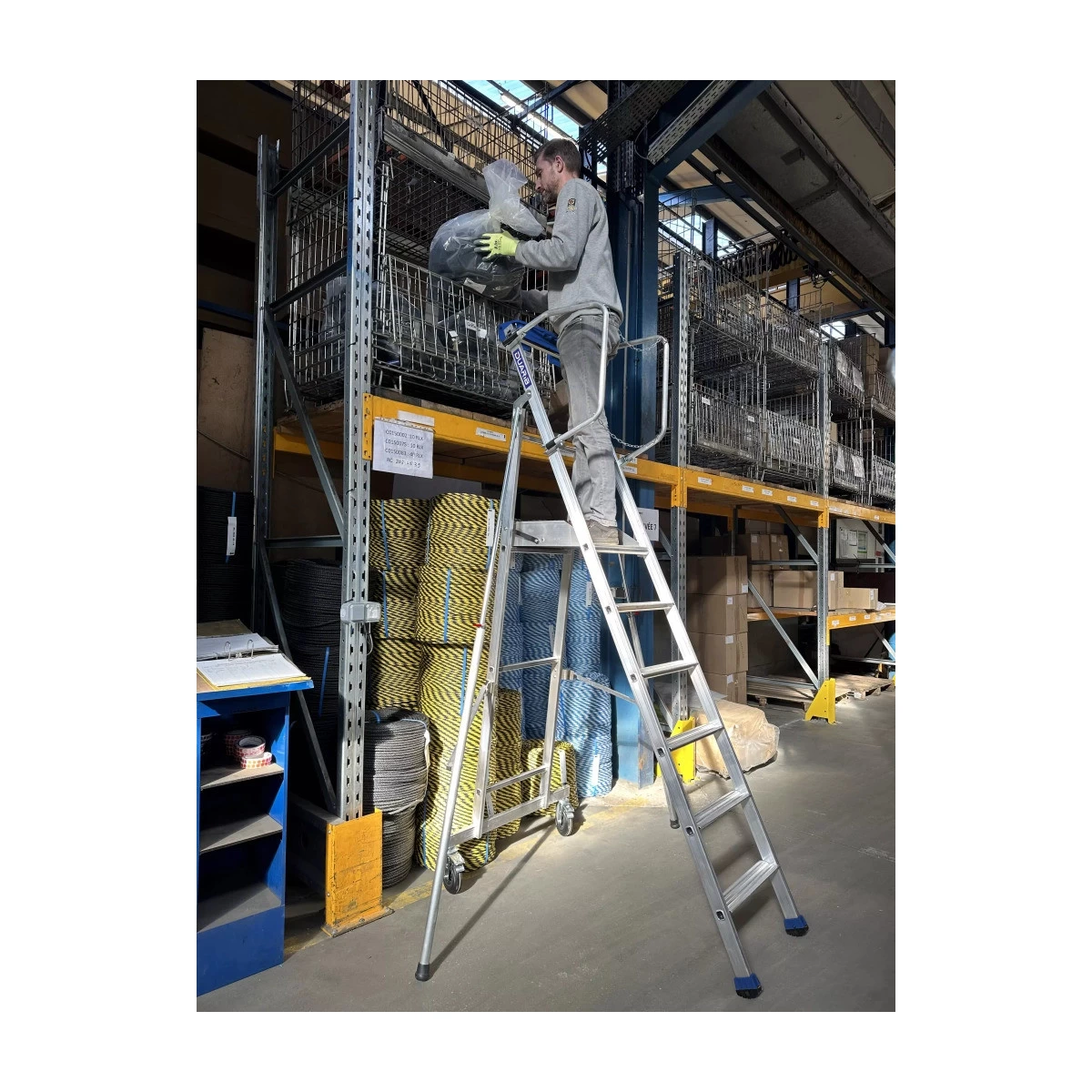 Cette plateforme vous permettra d’accéder en toute sécurité aux rayonnages, racks de stockage et machines.