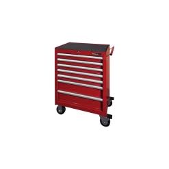 Cette servante d’atelier 7 tiroirs en acier est équipée de glissières sur roulement à billes, de larges et grandes roues à freins, de doubles parois acier et d’un système de blocage des tiroirs qui évite le basculement de la servante. La charge statique maximum est de 45 kg par tiroirs.